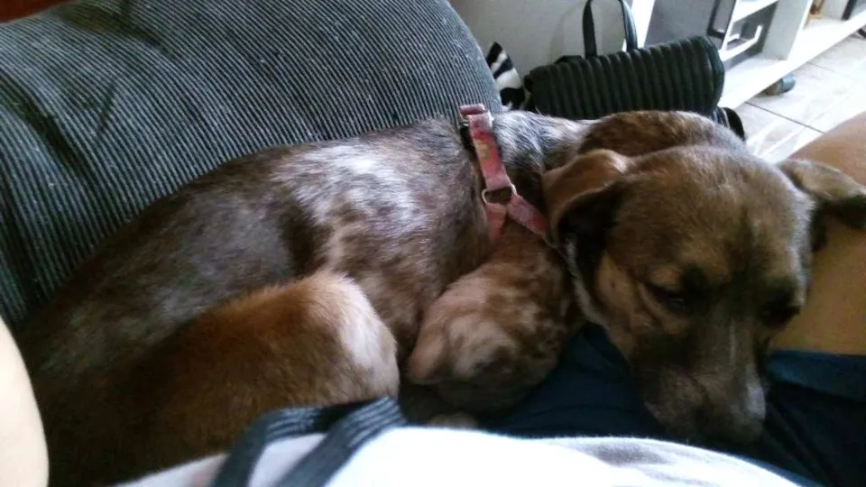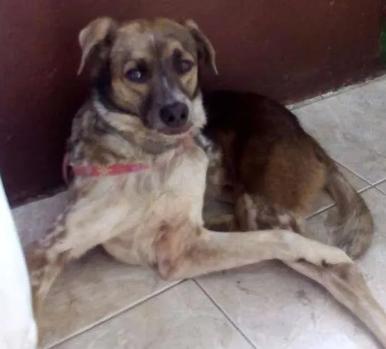 Quando ela saiu pra rua estava apavorada com os fogos,estava com uma coleira estampada e outra de anti pulga. É muito medrosa. Ela fugiu da Mena Barreto,centro. Próximo ao Colégio Municipal Nilo Peçanha.