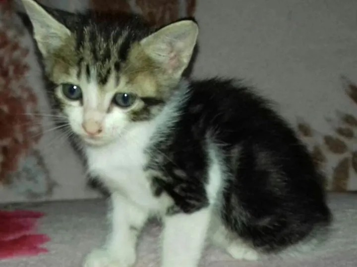 Filhotes de gato, eles têm um mês e 5 dias , comem ração umedecida com leite ou água e sabem usar caixinha de areia.