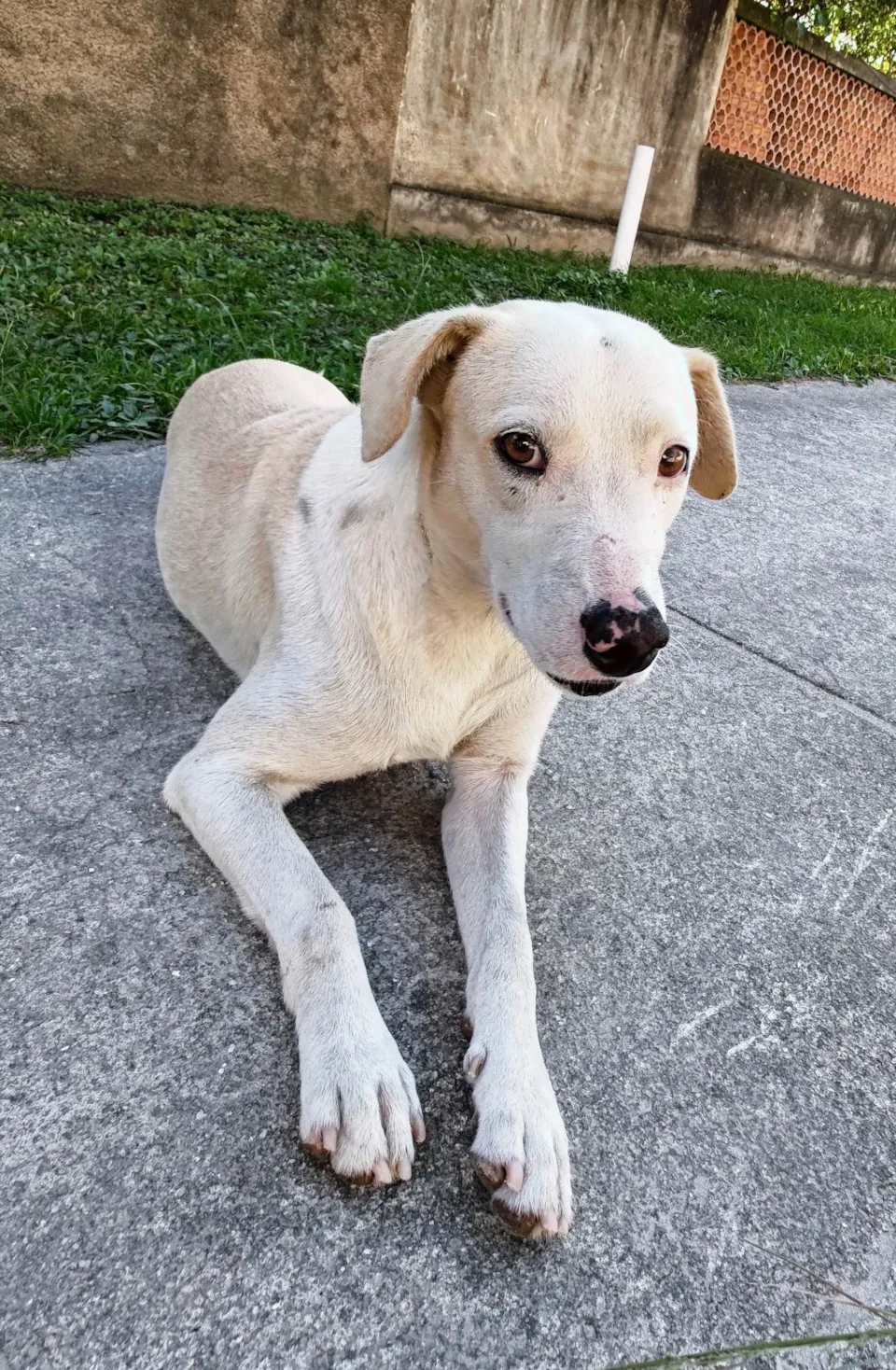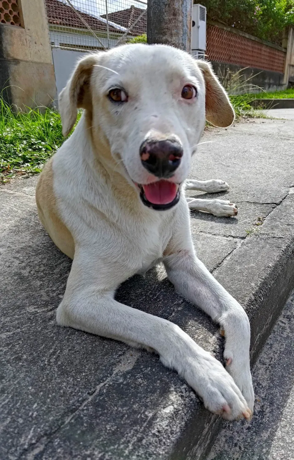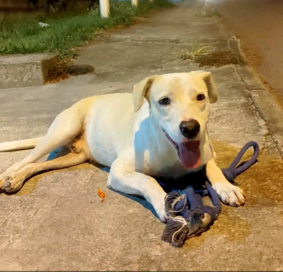 Esse cãozinho foi abandonado há 1 ano. Desde então, ele está sendo cuidado com amor, simparic mensal, medicação e ração super premium. Ele vive numa calçada, e precisa de um lar pra chamar de seu.
