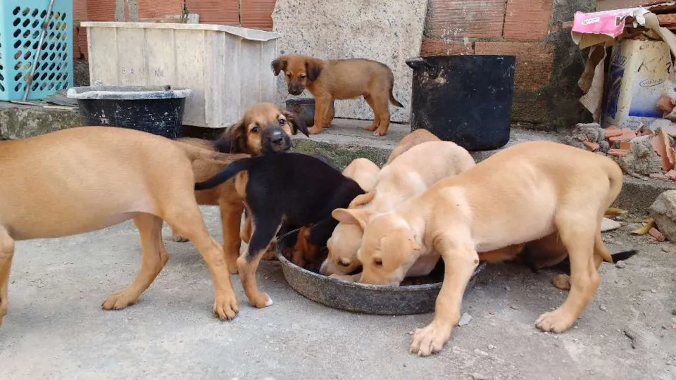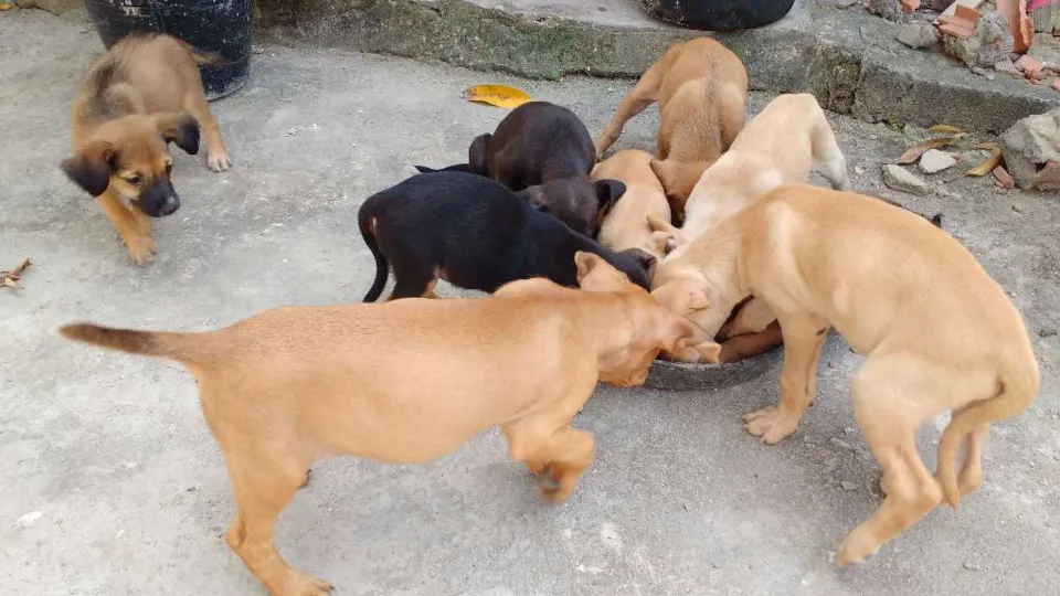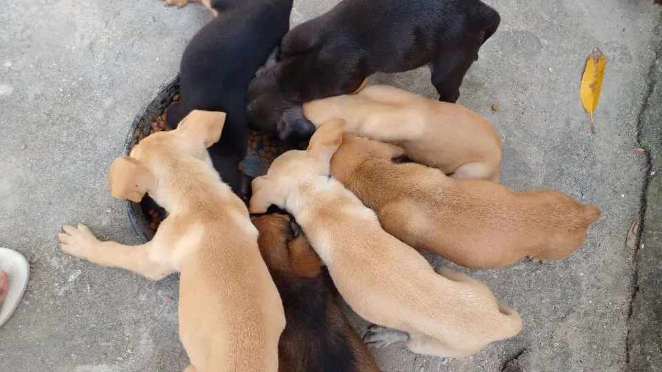 Vira latas, lindos, já estão comendo ração.