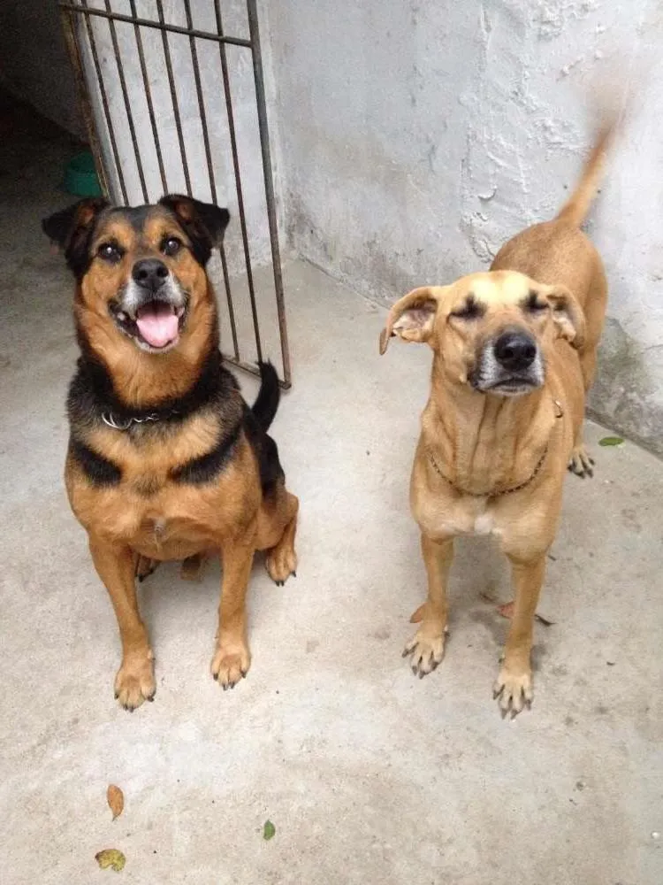 Resgatei esses dois essa semana na rua. Incialmente, achei que tivessem fugido de algum lugar, pois estavam de coleira e muito bem tratados, porém procurei pelos supostos donos em tudo quanto é lugar, em inúmeras páginas, espalhei cartazes e nada. Concluí, assim, que foram abandonados mesmo. Ambos porte grande, castrados e extremamente dóceis. São calmos, muito carinhosos, obedientes e se dão bem com outros animais. Ótimos para quintal, sítio, chácara, etc. Levo em qualquer lugar do Rio de Janeiro.