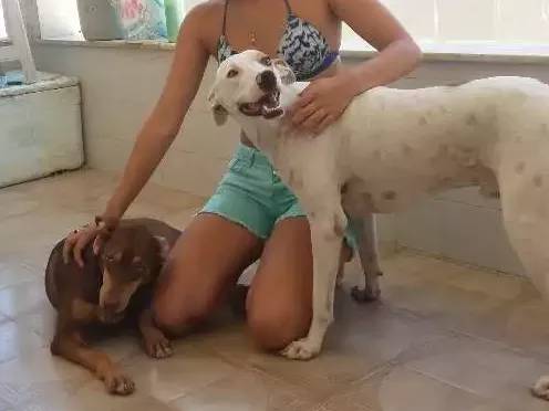 Os encontrei na rua, quando eram bem filhotinhos, agora já estão fora de risco e bem saudáveis. São bem amigáveis, adoram brincar e convivem bem com outros animais. A fêmea, possui um olho verde e outro azul. O macho é branco com pintinhas preta.