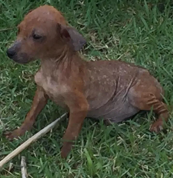 Encontrei esse filhotinho próximo a minha casa em Camboinhas, muito desnutrido e fugindo desesperadamente de um gato que corria atrás dele. Parei o carro e o levei para a Veterinaria sem muito saber qual seria o próximo passo. Ela cuidou dele por um dia e me pediu que levasse p casa e terminasse o tratamento com ele. Ele está sendo vacinado toda semana para tratar a sarna e já tomou os remédios conta vermes, pulga e carrapato. Ele é super calminho e tá comendo muito. Além disso, ele dorme muito peovavelmente pelo stress que passou enquanto tava nas ruas.... contudo tá engordando e crescendo direitinho de acordo com a Veterinaria. No momento eu não posso ficar com ele pq tenho um bebe de 9 meses com algumas questões de saúde que me demanda muito tempo e cuidados e um outro cachorro pequeno. Além disso viajo constantemente a trabalho, e não tenho com quem deixá-los....
