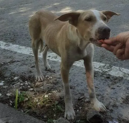 Encontrado próximo ao corpo de bombeiros da região oceânica de Niterói. Não sabe andar na rua e quase foi atropelado. Está com um dos "braços" raspado como se tivesse passado por algum exame de sangue ou anestesia. Muito assustado e c medo.