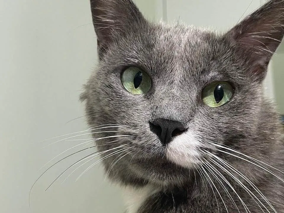 Tem pelagem cinza, olhos verdes, já faz as necessidades na caixinha e volto a dar ênfase, esse gato é um amor ??