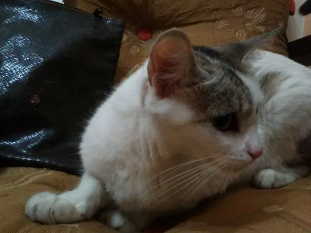 Nina é uma gata fofa de 3 aninhos que perdeu sua dona recentemente (a mesma faleceu). Ela possui uma linda pelagem branca, com o rabo,topo da cabeça e orelhinhas rajadas de cinza. Temo lhos amarelos grandes e muito expressivos.Ela está acostumada a viver em apartamento telado sem acesso a rua. Ela precisa muito de um lar permanente para receber o carinho e cuidados que merece, principalmente após essa perda tão triste que ela sofreu. Procuramos uma adoção responsável (apartamento telado ou casa sem acesso a rua) com urgência.