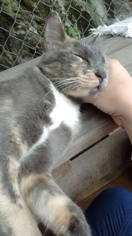 Malhada – gatinha nova, talvez 1- 2 aninhos? Extremamente carinhosa e carente. Todo dia que devo voltar para casa ela fica pulando nas minhas pernas, pedindo para eu ficar mais um pouquinho. Fica de gracinha, puro amor. A pessoa deve estar preparada para ter que dar muita atenção e carinho a ela. Temos castração marcada.