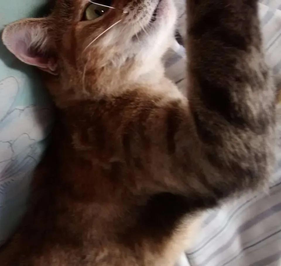A tia me castrou há 1 semana, no mesmo dia eu já estava boa e aprendi a usar a caixinha de areia. Adoro ração, muita água, um cantinho quentinho para dormir e brincar/pular bastante. Fui vermifugada e testada, negativa para Fiv/Felv.