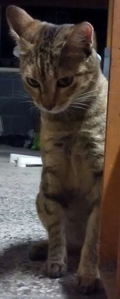 Moro numa rua sem saída, e quase nunca saio de lá; mas há muitos perigos constantes como pessoas querendo me expulsar, outros animais que brigam, além da chuva e do frio. Preciso de um lar (apartamento ou casa com todas as janelas teladas!) que me dê muito amor e paciência. Tenho medo de cachorros, mas os outros gatos que moram na rua não tenho problemas.