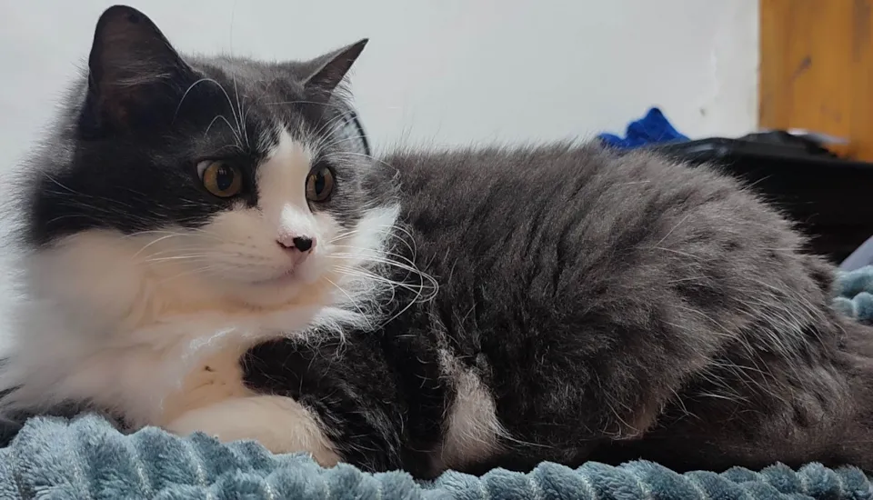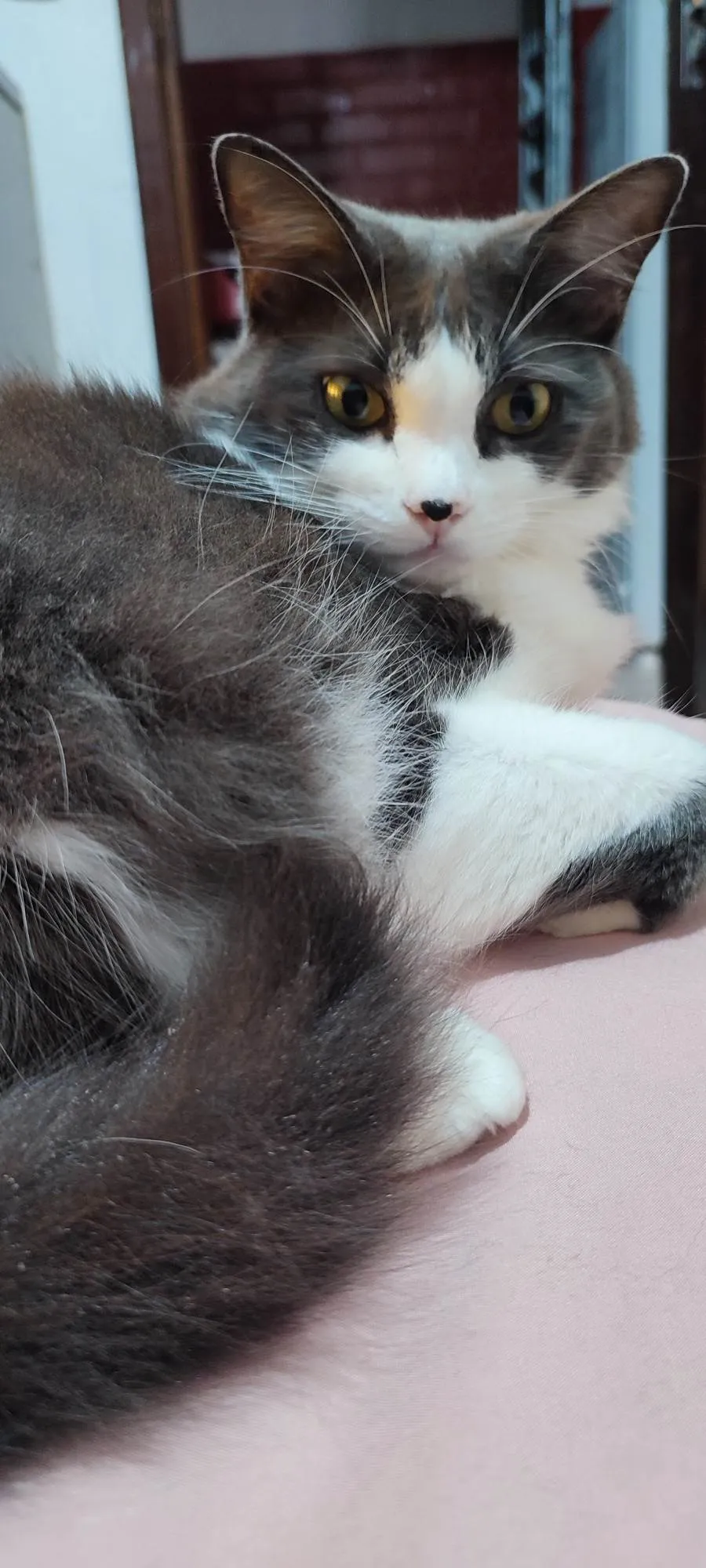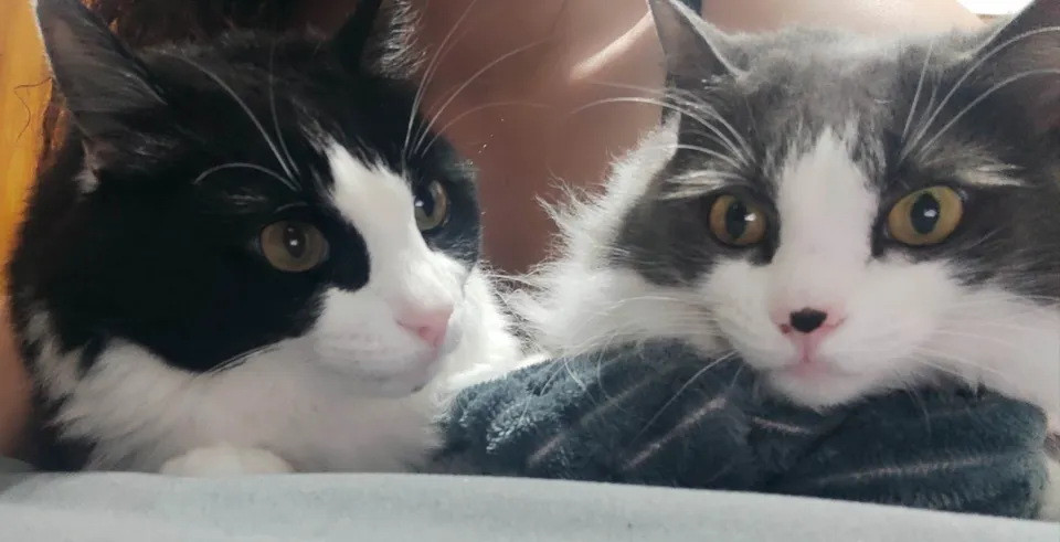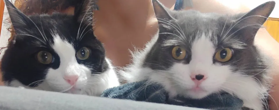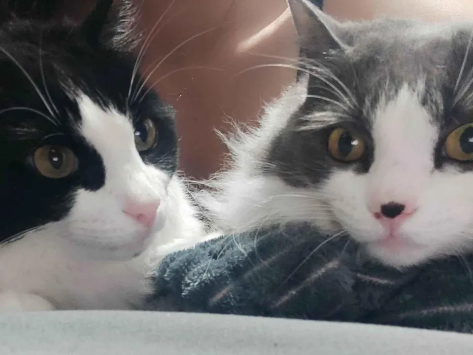Conheçam as irmãs Amora, de pelagem charmosa em branco e preto e a Ester com uma bela pelagem cinza com branco.