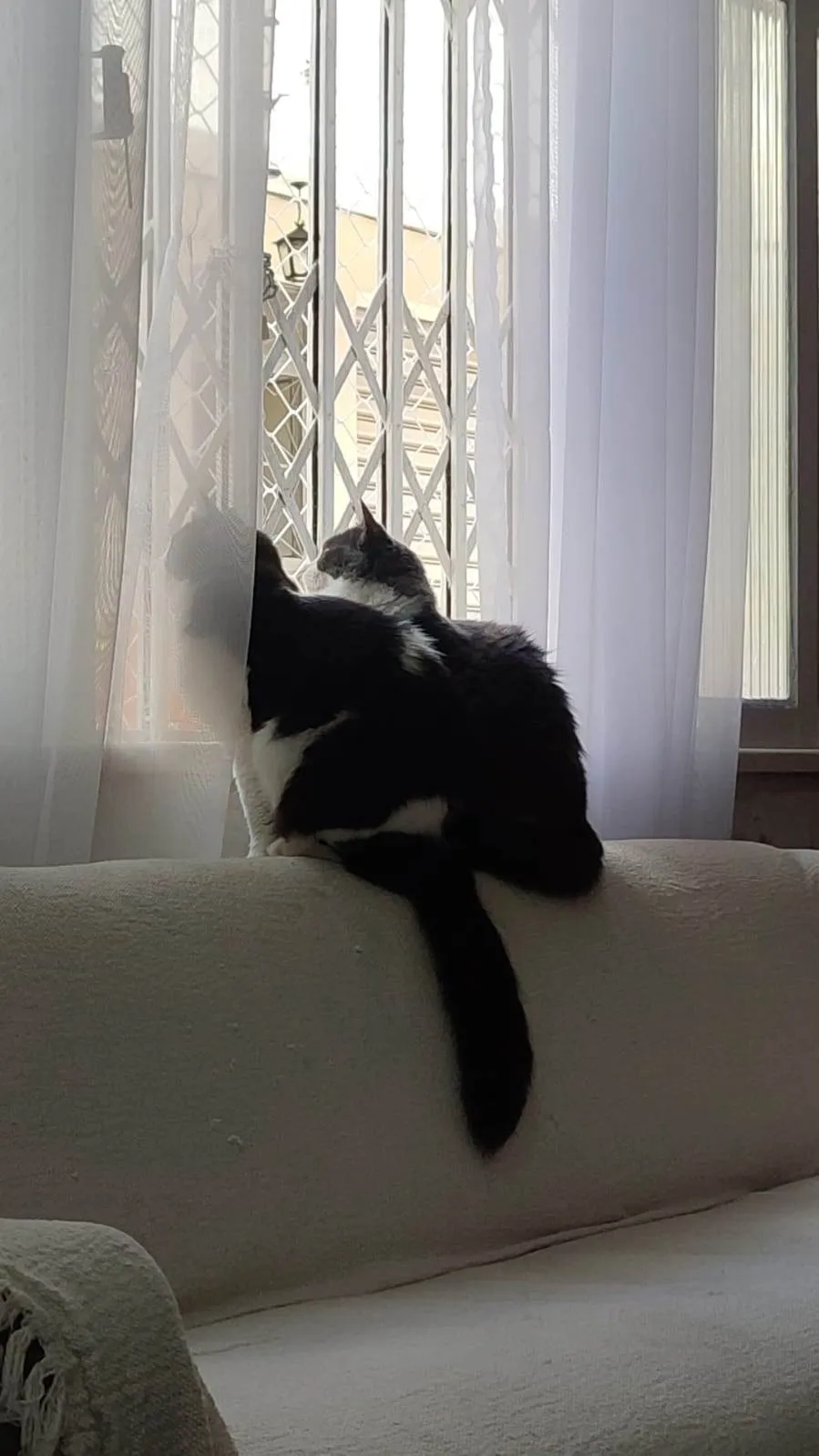 Outro detalhe sobre elas: não sobem nas coisas como mesa, pia, fogão, geladeira... São bem comportadas. Amam ficar fofocando na janela. Elas têm caixas de transporte (uma para cada), 2 mantas pequenas de pet, tesoura e potes de ração e água separados.
