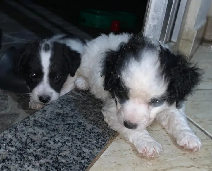 Esses lindos menininhos estão para adoção responsável. Estão com 45 dias, são mestiço de poodle com vira-lata e ficarão porte médio.
