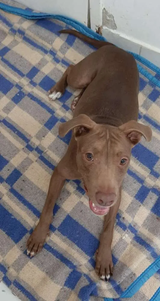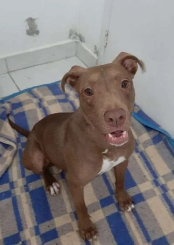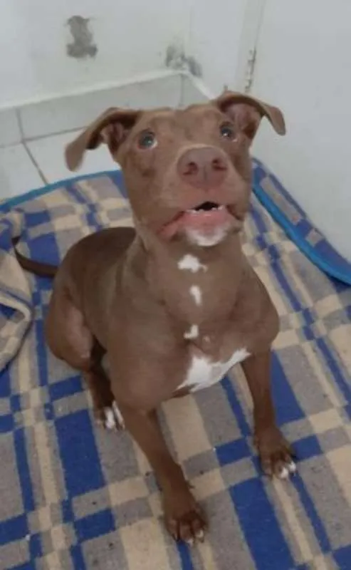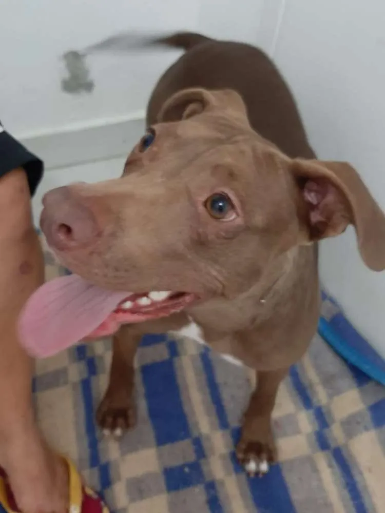 Essa linda princesinha é a Estela, é mestiça de pitbull, CASTRADA, vermifugada, vacinada e ficará porte médio. Ela é muito brincalhona, adora pessoas, se dá bem com outros cães (precisa fazer a socialização), ela não gosta de gatos. Ela tem muita força e energia, então precisará de espaço.