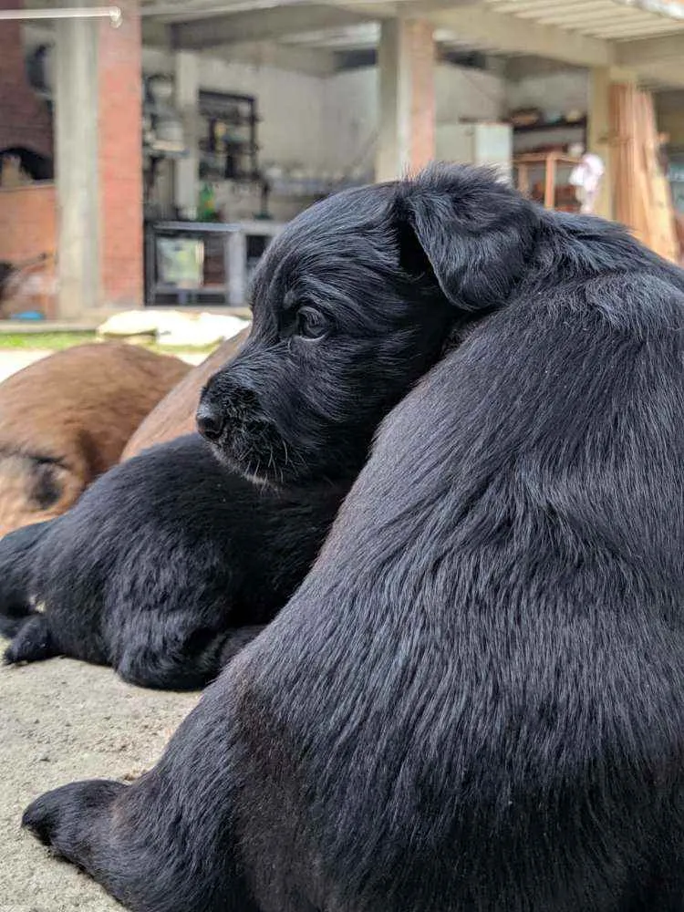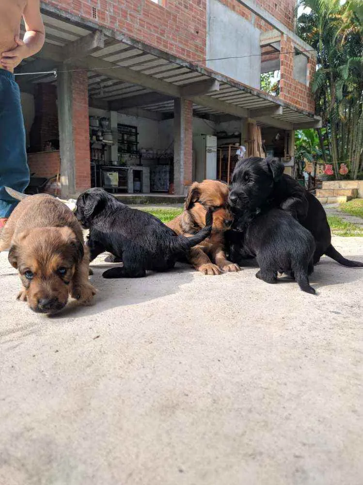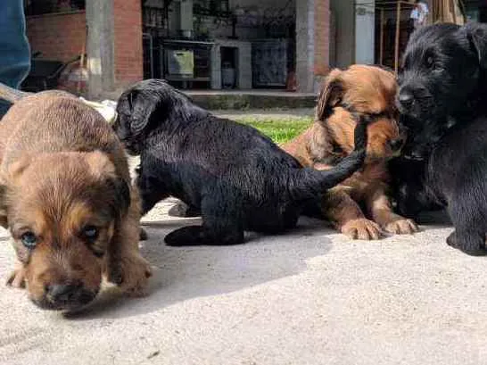 Lindos filhotinhos de york com srd. Pai filho de yorkshire com srd e a mãe filha de salsisha com srd. Os filhotes tem as pernas curtas e pelos longos e crespos. 2 fêmeas e 4 machos, sendo dois machos pelo claro e os outros 4 pelos escuros.