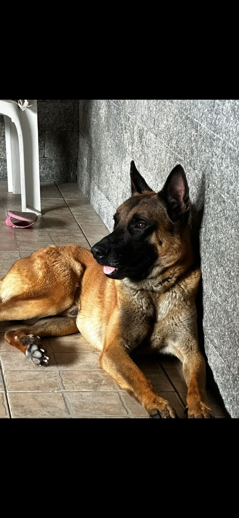 Ozzy, tem 3 anos da raça Pastor Belga de Malinois. Pegamos ele na rua, quando tinha 7 meses. Hoje, estamos nus mudando para uma casa pequena. E nessa casa que moramos tbm é pequena demais para ele. Ele precisa de um lar com espaço para gastar energia. Por eu ter um bebê, não consigo dar uma atenção pra ele. Como passear e interagir. Ele adora dormir na cama, ficar no sofá. Ele anda estressado por estar em um espaço pequeno para ele. Estamos com o coração apertado. Mas ele merece um lar maior.