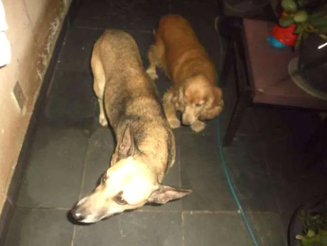 Na verdade são dois cães . Um é o Parrudo , macho , com pelagem cinza escuro , brincalhão e tem 5 anos e o outro cão é a Flor , fêmea , com pelagem mel, mansinha e tem 6 anos .Os dois são saudáveis , são bem tratados e os dois são como marido e mulher , pois cresceram desde de pequenos , e um não pode ficar longe do outro ,pois eles sentem falta.