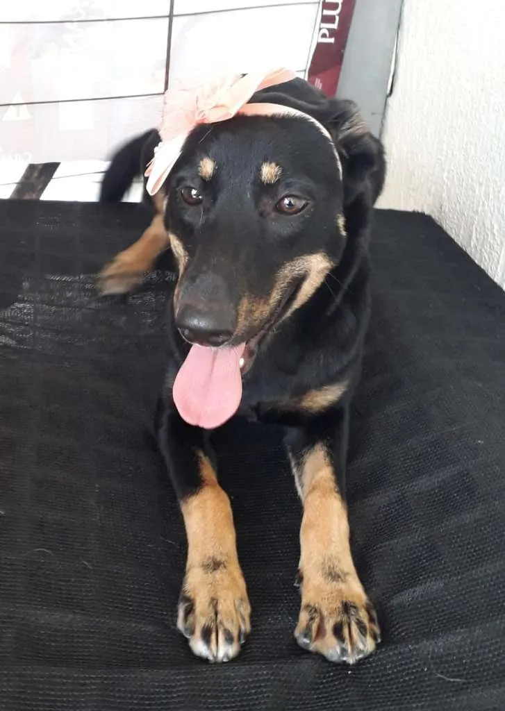 Essa linda menininha e a Pitty. Está com 8 meses, vermifugada, castrada, vacinada, porte Médio. Super dócil , carinhosa, carente, super companheira e brincalhona, ela não late, super tranquila.