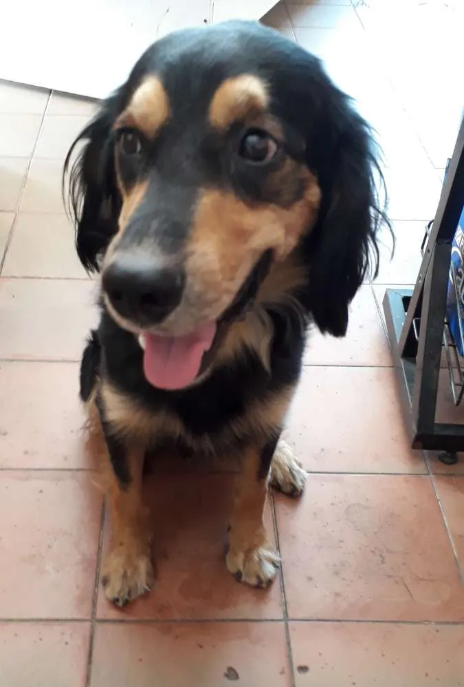 Gente esse pequeno apareceu aqui em Mesquita há 3 dias. Ele é muito bonzinho, carinhoso, muito tranquilo, pela dentição tem 2 anos no máximo, deve ter uns 13kg.