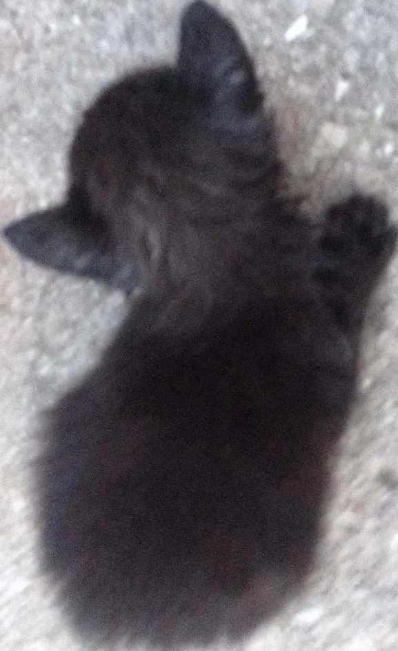 Foi encontrado em um esgoto, muito dócil, ainda mamando.