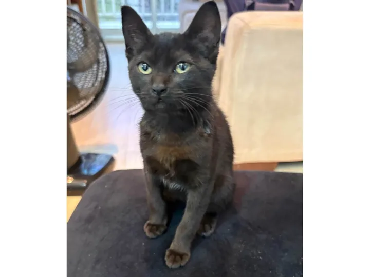 Conheça a Frida, uma encantadora gatinha SRD-Viralata à procura de um lar cheio de amor. Com uma pelagem preta brilhante e olhos verdes penetrantes, Frida esbanja charme e ternura. Apesar de ter entre 2 a 6 meses, já demonstra um temperamento dócil e sociável, ideal para quem busca uma companheirinha amorosa e carinhosa.
