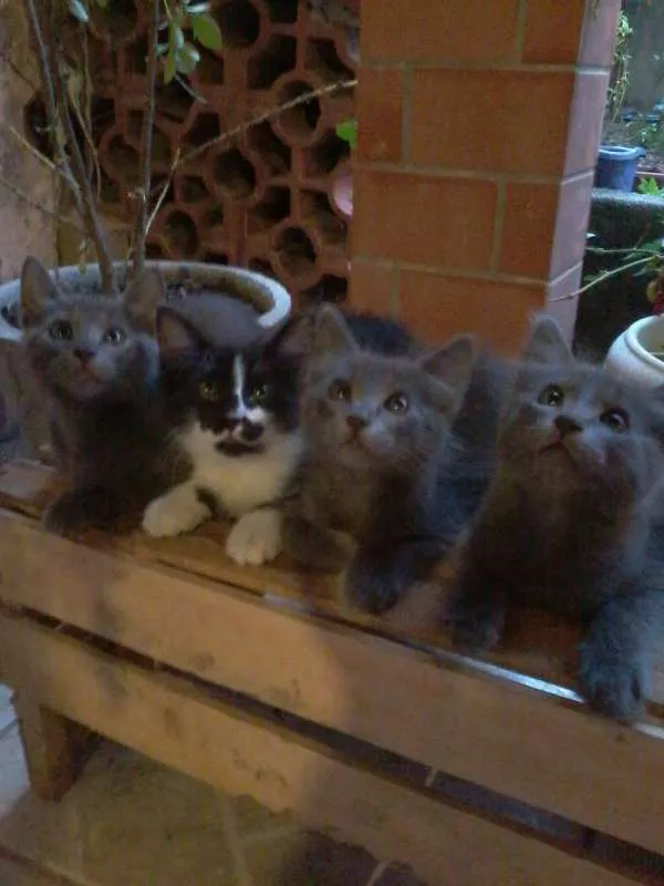 4 filhotes (2 machos e 2 fêmeas), sendo 1 malhado e 3 cinzas