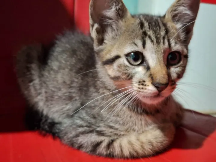 Conheça a Zoe, uma adorável gatinha à procura de um lar cheio de amor. Ela é da raça SRD-ViraLata e possui uma linda pelagem rajada que a torna única. Zoe tem entre 2 a 6 meses de idade, com porte pequeno, perfeita para se adaptar a vários tipos de ambiente.