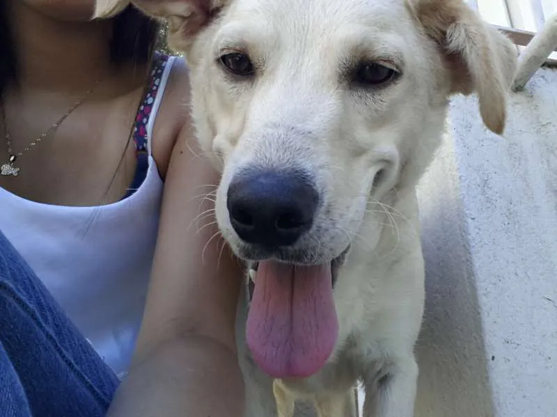 Ela é uma linda mestiça com labrador, ela é muito carinhosa, apesar de grande ela é apaixonada em um colo bem gostoso. Ela é um bebezao! Ela quer muito encontrar um lar para poder se divertir. Nos a chamamos de varios nomes que ela adora: cell, Nega branca e dinossaura. Ela espera por você.