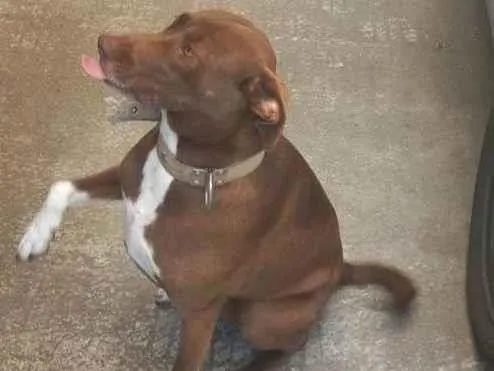 A Mona é uma cadela marrom com patas brancas, castrada, extremamente dócil, vacinada contra raiva (entre outros). Ela já tem guia, casinha e potes de ração e água, favor entrar em contato pois é uma situação urgente.