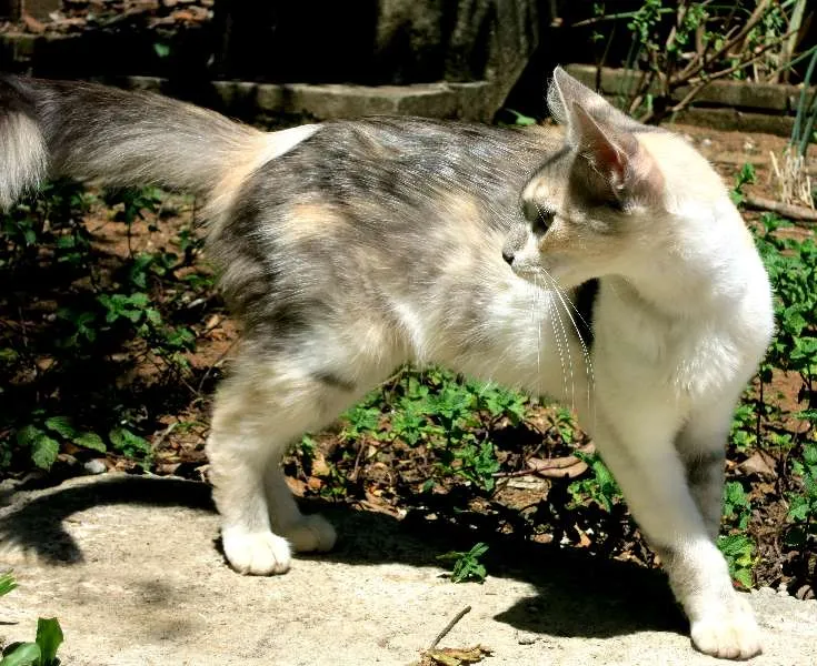 A SOL apareceu na casa da minha sogra em Petrópolis-RJ. Estava morrendo de fome, e ficou doidinha quando ouviu o barulho da ração que levamos. É muito meiga e carente, mas minha sogra não pode ficar com ela. Acreditamos ter sido abandonada, pois está bem cuidada e acostumada com pessoas. Com o coração partido tivemos que deixá-la, ela está solta sem nenhuma segurança. Não sabemos se está castrada, mas nos comprometemos a castrar e também podemos leva-la para o Rio caso apareça uma família legal para esta menina dengosa.