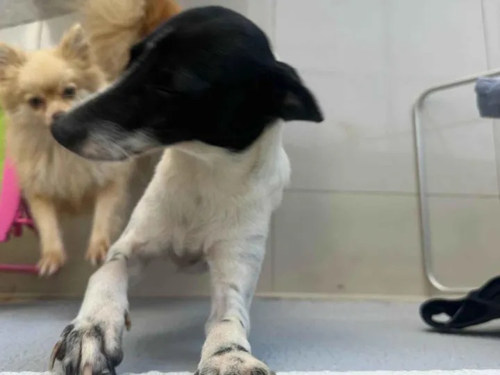Conheça a Branquinha, uma linda cadelinha SRD de pelagem branca e preta, com apenas 1 ano de idade e porte médio. Ela é uma guerreira! Encontramos a Branquinha assustada, após ter sido solta junto com sua filhotinha, que infelizmente não sobreviveu. Mesmo após essa experiência traumática, ela é dócil, amorosa e possui um temperamento calmo, brincalhão e sociável.