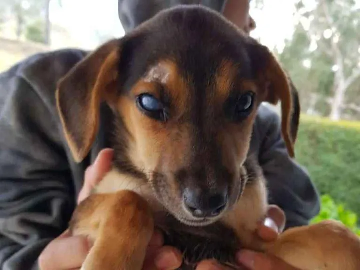 Encontrada em uma estrada do RJ com mais 2 irmãs, Zuka (Aqui no site) e outra que já foi adotada. Fêmea, Filhote de 3 meses (Jul/2020), vermifugada. Levou uma pancada na cabeça e ficou ceguinha de um olho. Saudável. Garantido Castração e Vacina. Porte M.