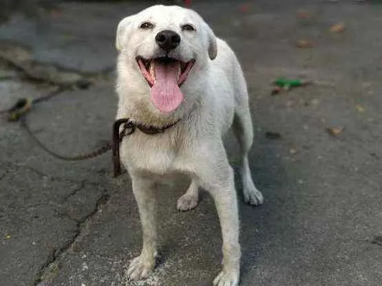 Médio porte, branco, dócil e carinhoso. Branquinho foi abandonado filhote.
