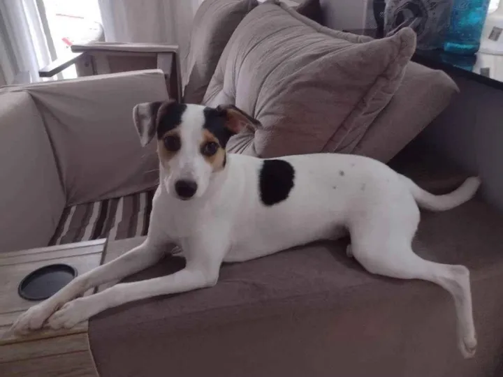 Peguei ele para adotar e não conhecia como ele seria ,trouxe ele para o apt ,ele cresceu um pouco e não esperava que fosse tão agitado , o apt está sendo pequeno para ele , tem muita energia . Eu trabalho com costura e ele chega a alcançar a mesa ,tanta comber tecidos , tudo , panos de chão , tapete . Meu filho leva ele para passear 1 vez por dia , durante 1 h . Ele estuda não tem como levar mais vezes. Eu tenho duas cirurgias no joelho e ele puxa muito , fico inchada . Sentimos que ao invés de melhorar está piorando o comportamento. Sentimos que é a falta de espaço . Alguns veterinários disseram que ele parece uma mistura com fox paulistinha , preciso trabalhar e está difícil. Ele já comeu tecido, pula de repente e chegou a vomitar , quero alguém que ame cachorro ,ele gosta de ficar por perto . Carinhoso e carente . Nunca mordeu .
