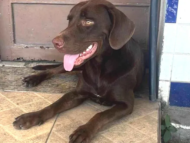 Apareceu a poucos dias na rua onde trabalho, Doutor Luiz Guimarães 770, e desde então tenho cuidado dele na loja, porém ele fica preso e sei que ele está bem cuidado, acredito que tenha dono e fugiu.