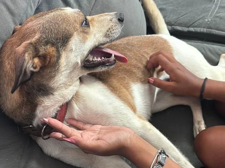 Jade , foi encontrada na rua e minha filha trouxe ela para casa mas hoje não tenho mais condições de cuidar por conta de um AVC que sofri .ela está castrada e chipada.