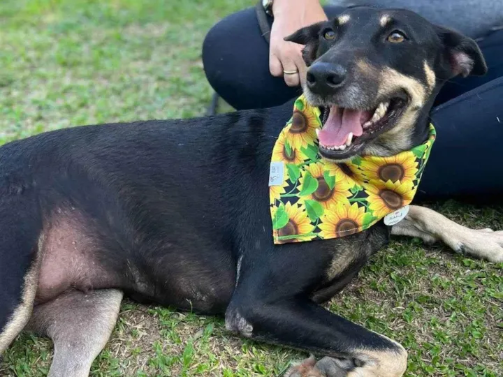 Essa é LUZ, resgatada em 2019 grávida de NOVE filhotes, no meio fio de uma das mais movimentadas avenidas do Brasil. Estava ali, quase imóvel, entre o barulho de um carro e outro.