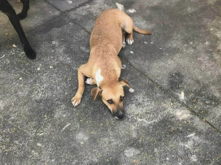 Resgatamos dois cachorros ( ela é um deles) em situação de rua e ambos com feridas. Cuidamos deles, mas infelizmente não podemos ficar com eles, pois estamos de mudança.