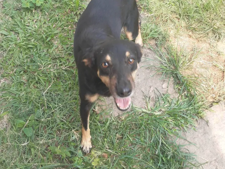 Vira-lata de 5 anos com pelagem preta e marrom em alguns pontos. Castrada. Ela é arisca com quem não conhece, mas depois de se acostumar, gosta de receber carinho. Ela dá bastante sinal e late. Seria mais indicado para casa.É acostumada com criança. Estou doando pois infelizmente não tenho condições financeiras de dar todos os cuidados que ela merece.