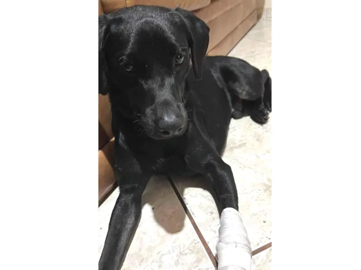 Pretinho foi encontrado com fratura exposta (suspeita de atropelamento) e precisou colocar pino de sustentação pq perdeu os ligamentos da patinha e, mesmo com todo sofrimento, SEMPRE foi amoroso e carinhoso com todos que o ajudavam.