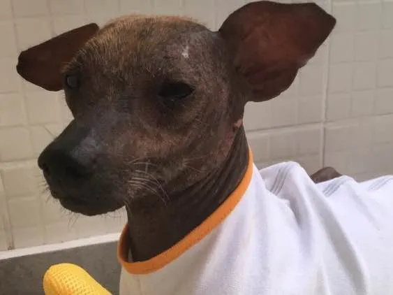 Vc vê essa carinha e não diz o que essa pelada peruana já passou em seu calvário de reprodução de filhotes caríssimos para dar lucro a algum humano que nunca fez jus a sua raça! Sarinha é como a chamamos! Mas na hospedagem ela tb já ganhou um apelido carinhoso: Morceguinha. Após todos dormirem a cadelinha fica andando pela casa! Não gosta de luz, foge dela! Sabe-se lá o que aconteceu. Talvez tenha vivido assim na escuridão a sua vida! O fato é que agora, essa docinho não vai mais ser maltratado, abandonada ou explorada!