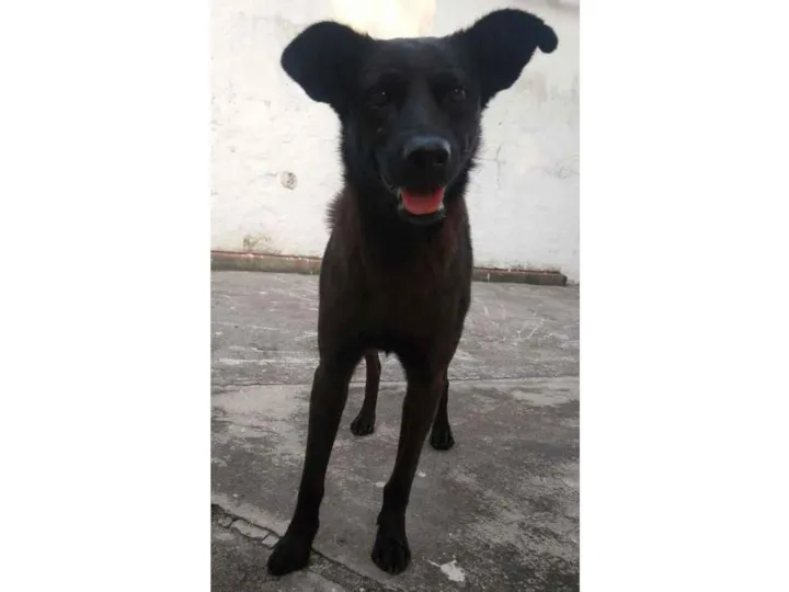 Esse cachorro fica seguindo meu esposo o tempo todo no trabalho dele. Mas moramos num apartamento muito pequeno. Então estamos procurando um lar para ele.