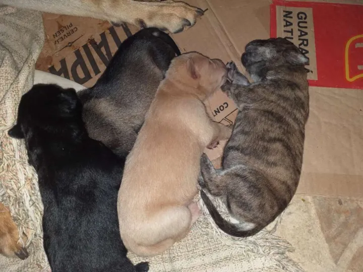 Nasceram 5 bebês,são lindos!!Estao mamando,a mae pelagem curta amarela,e os filhotes são todos misturados,varias cores,fucinho redondos,uns fofos!!Belo presente de natal!!