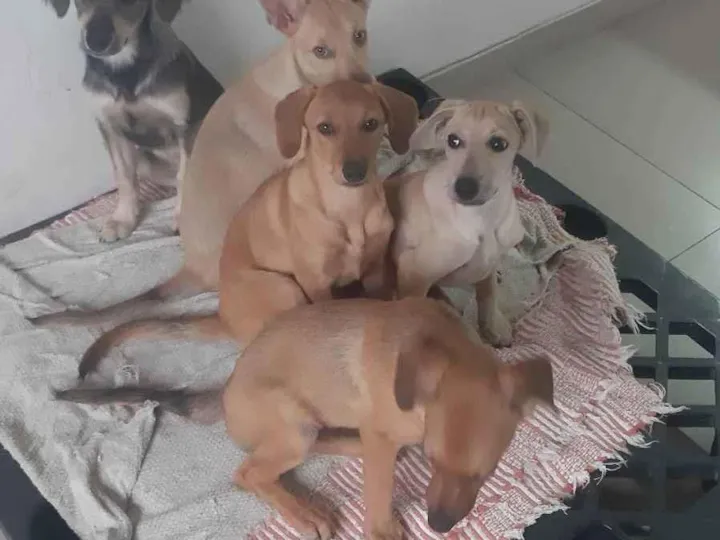 São 5 cachorros 2 fêmeas e 3 machos preciso de ajuda pois não tecondições de ficar por que já tenho 5 grandes.