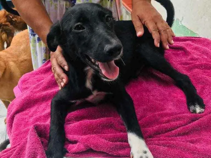 Oi gente tudo bem? Eu sou o TÉO filhote de de quatro meses, eu meus irmãos fomos largado em um terreno cheio de mato, um lugar totalmente deserto , ficamos dias sofrendo na chuva e no sol, até que as tias do Abrigo atendeu um pedido de ajuda e veio nos socorrer ??