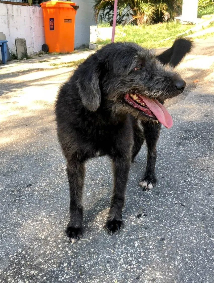 Olá, me chamo Wesley. Não, não, infelizmente não sou o cachorro do Wesley Safadão. Não verdade sou um cão em busca de um lar. Sou do tipo estopinha simpático. Muito social, com um abano de cauda fácil, doidinho pra ganhar um chamego