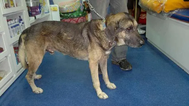 O animal esta muito debilitado, mal havia iniciado o tratamento sem o qual vai muito provavelmente morrer. Leva ao pescoco um COLAR AZUL – infelizmente nao tivemos tempo de mandar fazer uma placa de identificacao.