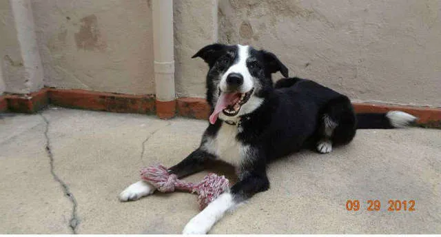Tem uma inscrição de número gravada como tatuagem, dentro da orelha. Estava de coleira preta com riscos brancos. Faz uso de ração renal e medicação para o fígado.