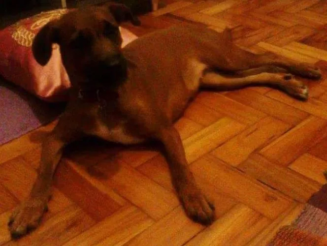 Fêmea SRD não castrada porte médio cor marrom manchinha branca no peito possui barbinha focinho Preto as patas traseiras de trás possuem seis dedos tem mais ou menos 3 anos 3 anos e meio de idade está perdida desde Maio de 2015 na Tijuca Rio de Janeiro obrigada