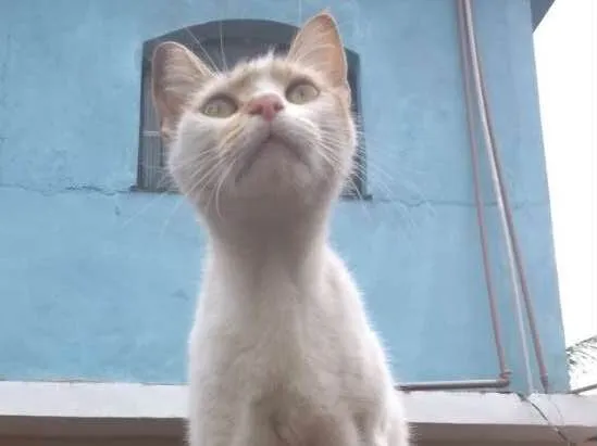Gata branca e amarela, muito dócil, apareceu aqui em casa.