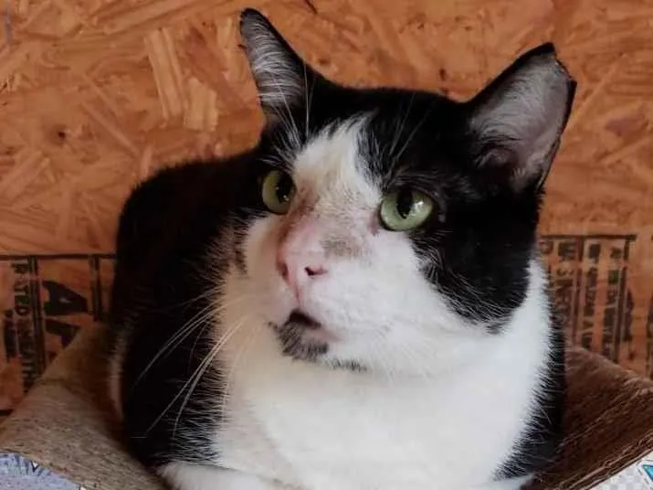Muito meigo. Está há 1 ano em lar temporário. Viveu 7 anos numa das colônias do Complexo Esportivo do Maracanã. Foi resgatado com ferimentos no rabo, pata e nariz. Talvez tenha sido atacado por algum cão. Foi tratado com muito amor e carinho, e agora está para adoção.